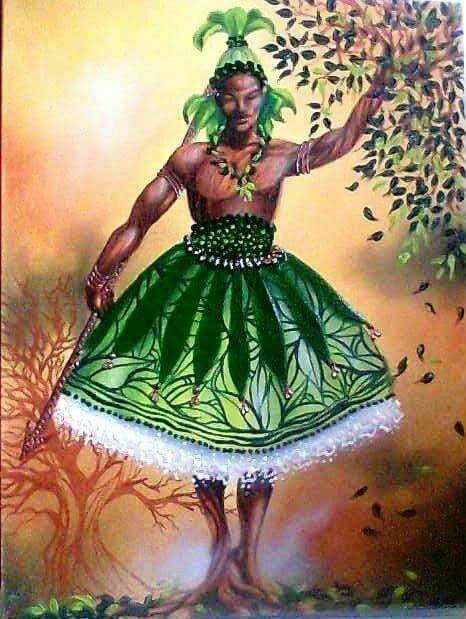 Conta o Itan que Ossain dá uma folha para cada orixá. O senhor das folhas, também filho de Nanã e irmão de Oxumarê, Ewá e Obaluaê, era o senhor das ewê (folhas), da ciência e das ervas, orixá que conhece o segredo da cura e o mistérios da vida. Todos os orixás recorriam a Ossain para curar qualquer moléstia, qualquer mal do corpo. Todos dependiam de Ossaim na luta contra a doença. Todos iam à casa de Ossain oferecer seus sacrifícios. Em troca Ossain lhes dava preparados mágicos: banhos, chás, infusões, pomadas, abô (banho de ervas), beberagens. Curava as dores, as feridas, os sangramentos; as disenterias, os inchaços e fraturas; curava as pestes, febres, órgãos corrompidos; limpava a pele purulenta e o sangue pisado; livrava o corpo de todos os males. Um dia Xangô, que era o deus da justiça, julgou que todos os orixás deveriam compartilhar o poder de Ossain. conhecendo o segredo das ervas e o dom da cura. Então Xangô sentenciou que Ossain dividisse suas folhas com os outros Orixás. Mas Ossain negou-se a dividir suas folhas com os outros orixás Xangô então ordenou que Iansã soltasse o vento e trouxesse ao seu palácio todas as folhas das matas de Ossain para que fossem distribuídas aos orixás e assim Yansã fez. Gerou um furacão que derrubou as folhas das plantas e as arrastou pelo ar em direção ao palácio de Xangô. Ossain percebeu o que estava acontecendo e gritou: