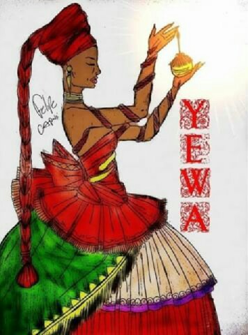 Domina a vidência, atributo que o deus de todos os oráculos, Orunmilá, lhe deu. Ewá é o Orixá da beleza e dos mistérios, senhora do céu estrelado, rainha do cosmo. Hábil caçadora, Ewá está relacionada à mata, à água,e ao ar, é a deusa dos rios e lagos, do céu cor-de-rosa, das florestas inexploradas. Ewá está nos lugares que o homem não alcança, onde só a natureza e os deuses se manifestam. As virgens contam com sua proteção, e aliás, tudo o que é inexplorado conta com sua proteção: a mata virgem, as moças virgens, rios e lagos onde não se pode navegar ou nadar. Ewá está nos lugares que o homem não alcança, onde só a natureza e os deuses se manifestam.Além das faixa branca do arco-íris, Ewá é representada pelos raios brancos do Sol, pela neve, pelo sumo branco das folhas, pelo sêmen e pela saliva. Ewá tem como símbolo um Ofá dourado, ou uma lança ou arpão, e às vezes traz uma pequena espingarda, eventualmente pode carregar serpente; carrega também uma cabaça de cabo alongado enfeitada com palha da costa, além é claro,da espada, insígnia das grandes guerreiras. As palmeiras com folhas em leque também simbolizam Ewá - exótica, bela, única e múltipla. Como se pode notar, Ewá é considerada a irmã de Oxumare, a faixa branca do arco-íris. Na verdade ela mantém fundamentos em comum com Oxumare, inclusive dançam juntos, mas não se sabe ao certo se seria a sua irmã, sua esposa ou filha.Quando cultuada na nação Ketu, Ewá dança, ilu, ramunha e aguerê, Na cultura jêje, onde suas danças são impressionantes, prefere o bravun e o sató e dança acompanhada de Oxumare, Omolu e Nanã. Nas festas de Olubajé, Ewá não pode ser esquecida, deve receber seus sacrifícios, e no banquete não pode faltar uma de suas comidas favoritas; banana-da-terra frita em azeite. Ewá é a única divindade do Phanteon Afro-Brasileiro ketu que responde na Nação Gêge. Ela é a Senhora das Ilhas e Penínsulas, apresentando-se como uma guerreira e ao mesmo tempo como um Ninfa, ora segurando a serpente Encantada, ora empurrando a lança símbolo de sua justiça particular. Em quaisquer dos casos, ela carrega em si o mistério da Origem dos planetas água e Terra. Entre ela e Obá-Olokum(Olissassa), Senhor dos Oceanos, o equivalente a Netuno, existe o elo que liga a origem da vida à continuidade da mesma. Por esta razão, todas as pessoas que são filhos ou filhas de Ewá, tem uma missão espiritual ou social no contexto do país onde nasceu e a visão de tudo. Ewá é a rainha do céu estrelado e dona das ilhas.