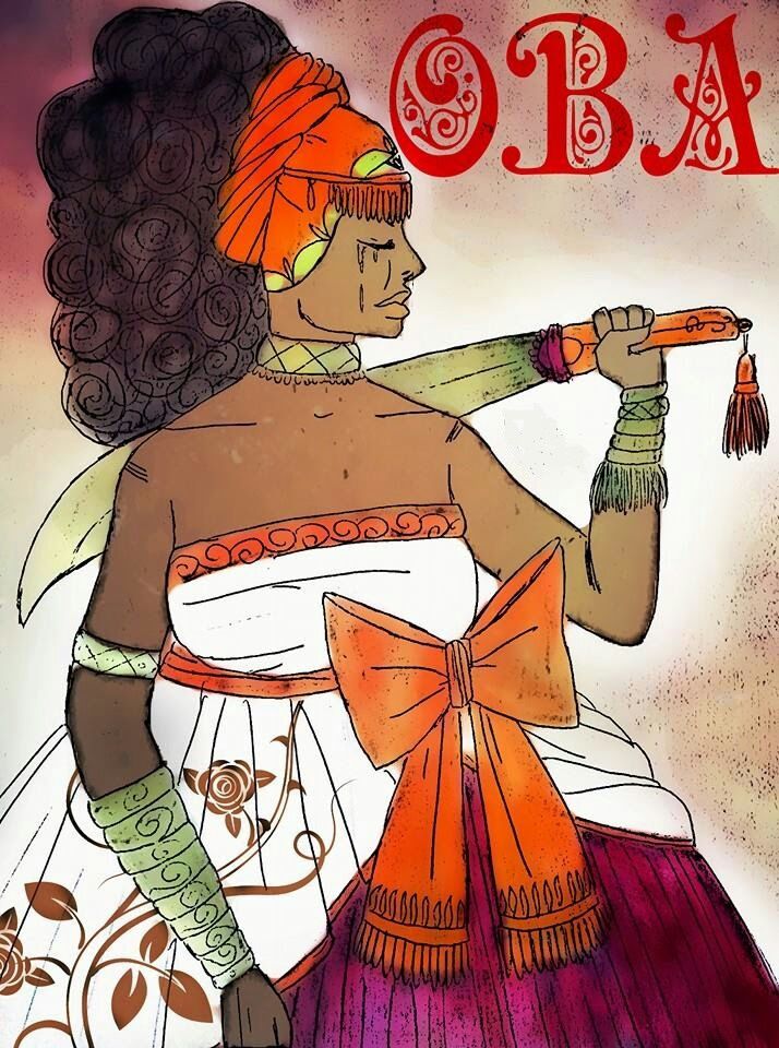 A filha de Obatalá, Obá a esposa de Ogum. Obá era casada com Ogum e também foi esposa de xango, desde que Ogum à venceu em batalha e praticamente a obrigou a ser dele. Mas Obá não gostava de Ogum, e essa falta de amor a fez ir embora, ela fugiu para Ifé. Um dia Obá conheceu Oxossi. Ode estava parado descansando sob a sombra da copa de uma árvore, e então ouviu um barulho, um atropelo! Ele se levantou para ver que estardalhaço era aquele e viu uma mulher correndo atrás de um cervo. Ele sorriu ao ver aquela cena, como uma mulher poderia correr atrás de um cervo e acreditar que poderia alcança-lo? Mas Obá corria o máximo que podia, e Oxossi então resolveu ajudar, ja que Obá caçava com muita dificuldade o seu sustento, pois não possuía boa técnica de caça. Oxossi a ensinou a caçar com lança e Ofá (arco e flecha), e Obá ensinou a arte de lutar a curta distância a Oxossi, o ensinando a habilidade da espada e do escudo. Oxossi e Obá não tinham desejos carnais um pelo outro, mas entre eles aconteceu um dos mais belos sentimentos, a verdadeira amizade. Eles se respeitavam e tinham um forte sentimento de irmandade, lealdade e cumplicidade, e por isso resolveram viver juntos.